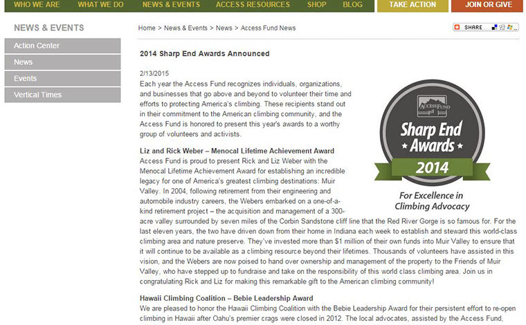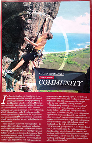 The Hawaii Climbing Coalition was honored by the 2014 Sharp End Awards.