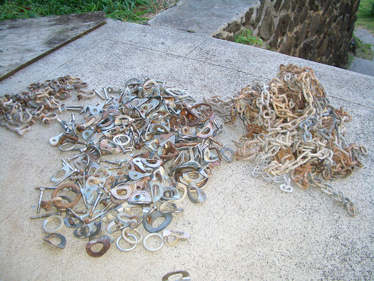 Old rusted bolts and chains removed from the Mokuleia Main Wall.
