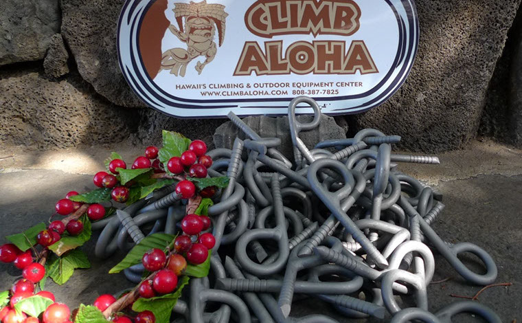 Starting off as a simple climbing shop staffed by knowledgeable climbers, Climb Aloha began simply as a means to fund future and existing climbing routes in Hawaii. Since our humble beginnings, Climb Aloha has funded the fabrication and purchase of thousands of dollars worth of bolts and hardware for Hawaii's climbing routes as well as on Guam. Using the money YOU spend here at the shop, we continue to maintain and establish routes in Hawaii using the best materials including titanium bolts, rings, and links. Mahalo for helping us continue this important mission!